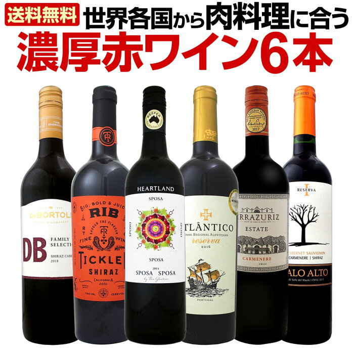 【送料無料】肉料理にバッチリ!世界各国から肉料理にあう濃厚赤ワイン6本セット!