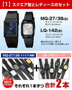 雑誌などでも話題のチープカシオが2本セットに! 【1】スクエア型とレディースのセット MQ-27/38(ユニセックス)から1本 LQ-142(レディース)から1本の合計2本 【2】スクエア型とラウンド型のセット MQ-27/38(ユニセックス)から1本 MQ-24(ユニセックス)から1本の合計2本 どのモデルが入っているかはお楽しみ♪
