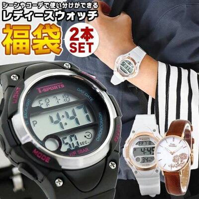 福袋 2021 レディース 腕時計 時計 2本セット スポーツウォッチ CREPHA クレファー Time October タイムオクトーバー 白 ホワイト 黒 ブラック ブラウン 女性用 中学生 高校生 誕生日プレゼント 女性 彼女 友達 娘 ギフト
