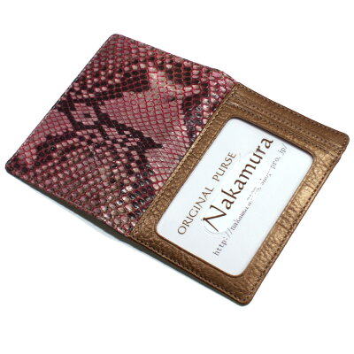 定期入れ 本革 カード入れ メンズ レディース パスケース レザー パイソン 蛇革 ヘビ 二つ折り パス入 透明窓 カード収納 ポイントカード 日本製 シンホニー ピンク